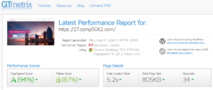 As you can see in the GT Metrix report, the page speed is 94% and the YSlow score is 87%. Based on the analysis the website page loads very quickly.